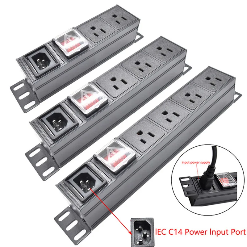 PDU Power Strip Unit IEC C14 port power input 2-10 3Pin US socket Switch cabinet rack wall desktop mounted Socket