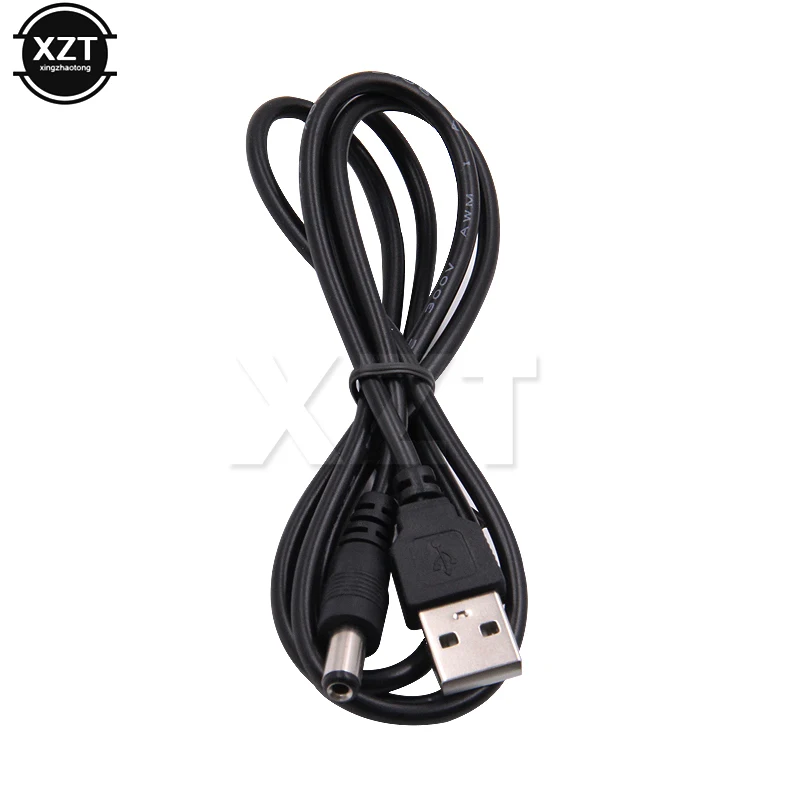 BLACK 1M USB Port To 5.5 x 2.1mm 5V DC Barrel Jack Power Cable Connector For Small Electronics Devices