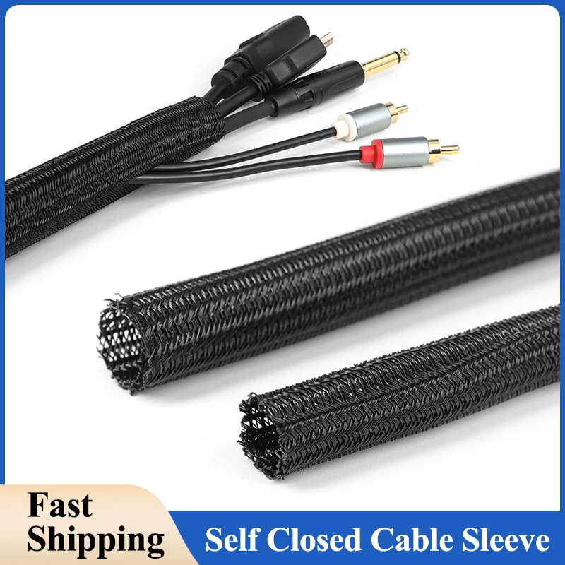 1/2/5/10/50m Black Self-Closed Cable Sleeve 3mm ~ 60mm PET Braided USB Cable Power Cord Insulated High Protection Split Sleeving