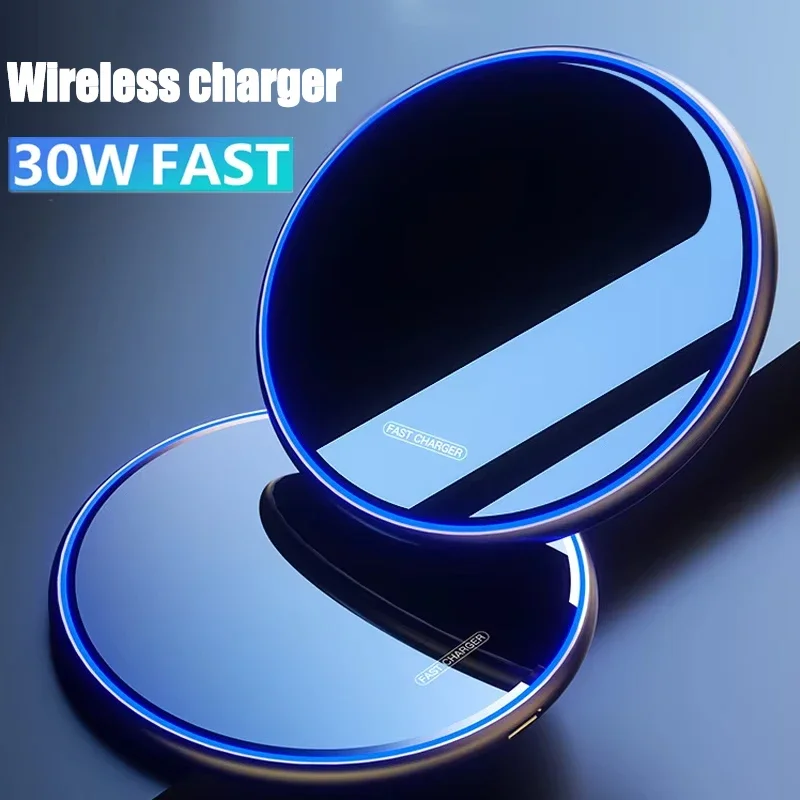 30W Wireless Charger For iPhone 15 14 13 12 11 Pro XS Max X 8 Ultra Slim Induction Fast Charging Pad For Samsung S23 S22 S21 S20