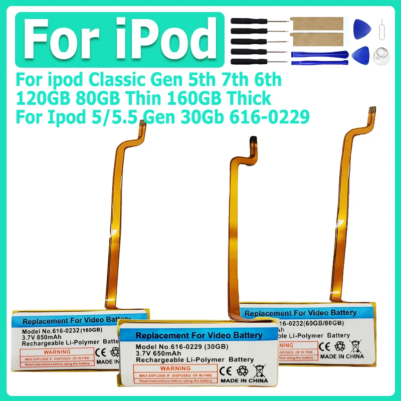 New 616-0232 Battery For ipod Classic Gen 5th 7th 6th 120GB 80GB Thin 160GB Thick For Ipod 5/5.5 Gen 30Gb 616-0229 BaterĂ­a +Tool