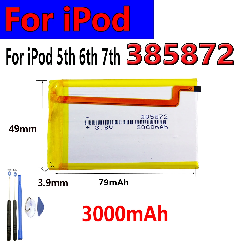 385872 Battery For iPod 5th Gen Video 30gb iPod 6th Gen Classic 80gb 120gb 7th Gen 160gb Batteries for Thick Back and Slim Back