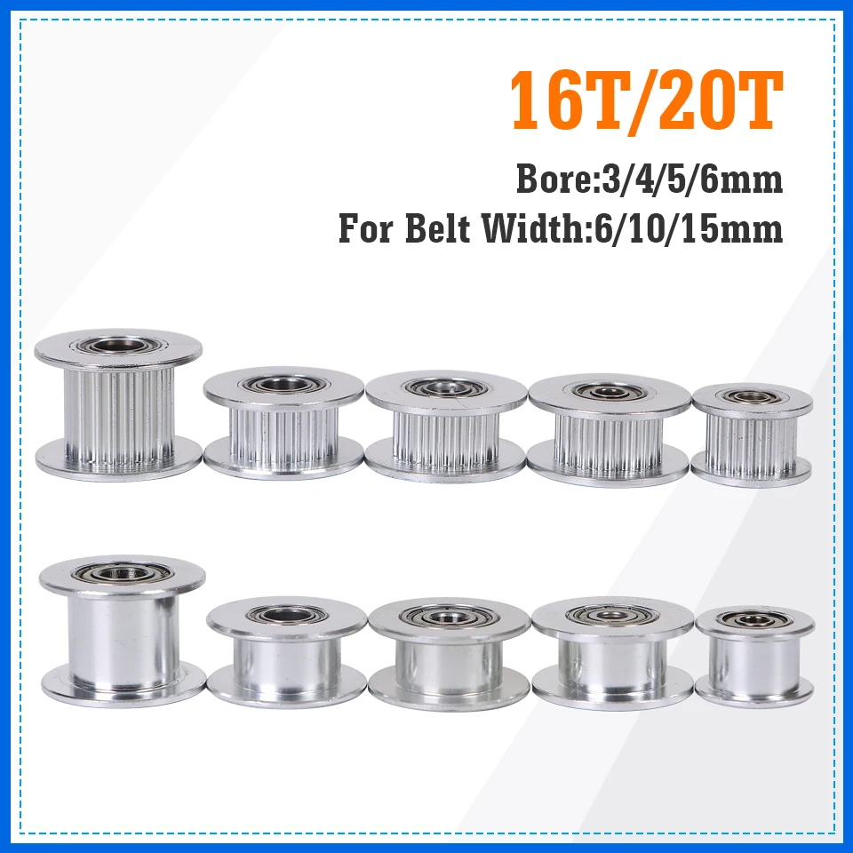 16T/20T GT2 Idler Timing Pulley 16 tooth 20 Teeth with 3/4/5/6mm Bore with Bearings for 3D Printer Parts Timing Belt 6/10/15mm