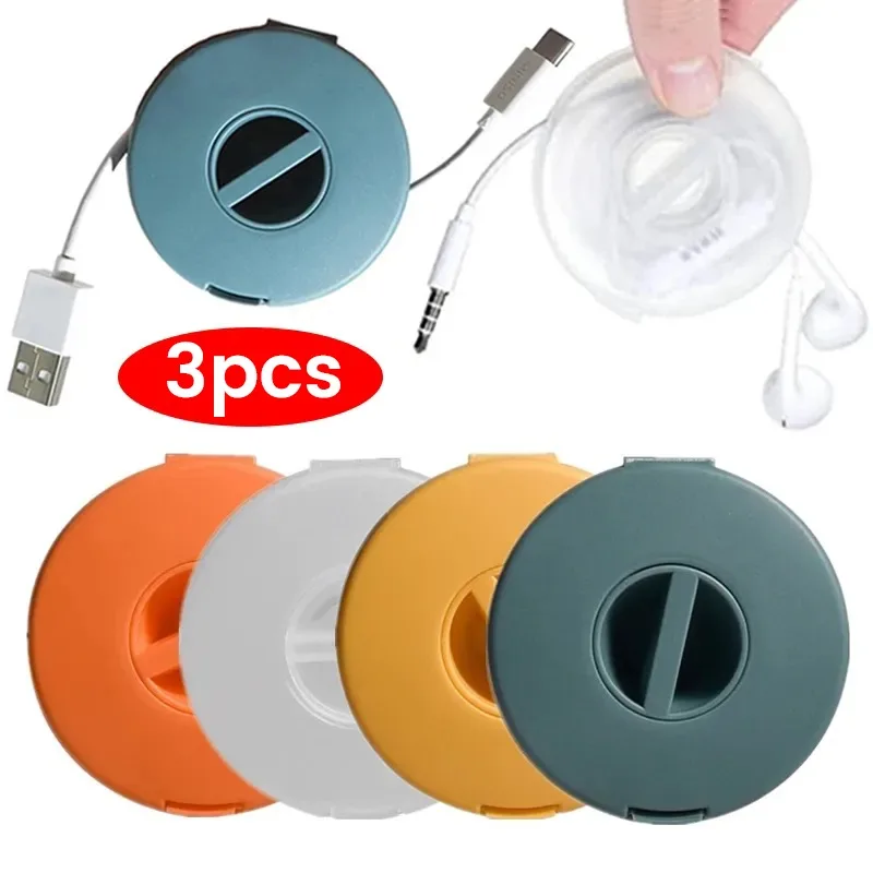 3/1Pcs Portable Charger Cord Holder Round Storage Cable Winder Retractable Cable Management Flexible USB Wire Cord Reel