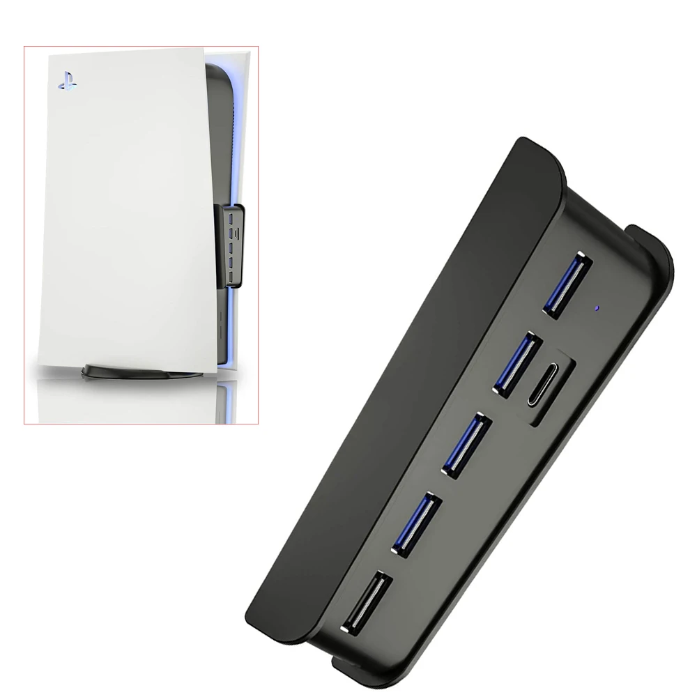 For PS5 6 in 1 USB Splitter Expander Hub 5 USB A + 1 type C Ports for PlayStation 5 Digital Edition Console Accessories