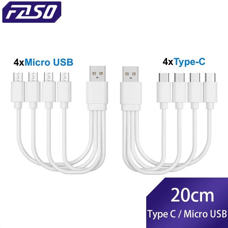 20cm Short USB Multi Charging Cable 4 in 1 Multiple Type C / Micro USB Charging Cord 4Port USB C Splitter Cable 5V 2A  Read more