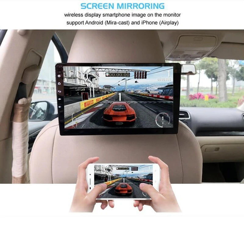 10.1 inch Car Headrest Monitor Tablet PC Android 8.1 4K FHD 1080 Wifi BT 32GB HDMI Rear Seat Entertainment Mirroring Andriod APP