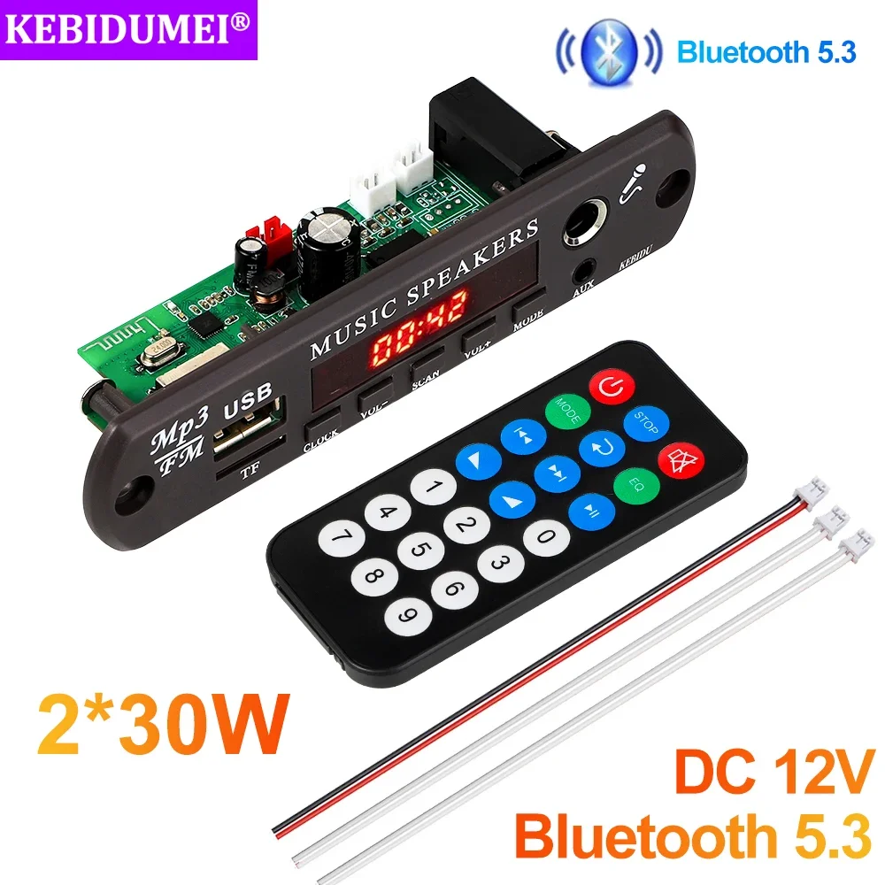 60W MP3 Decoder Board Bluetooth 5.0 MP3 Player 12-20V Wireless MP3 Player World Clock Microphone TF AUX FM Radio For Speaker  Read more