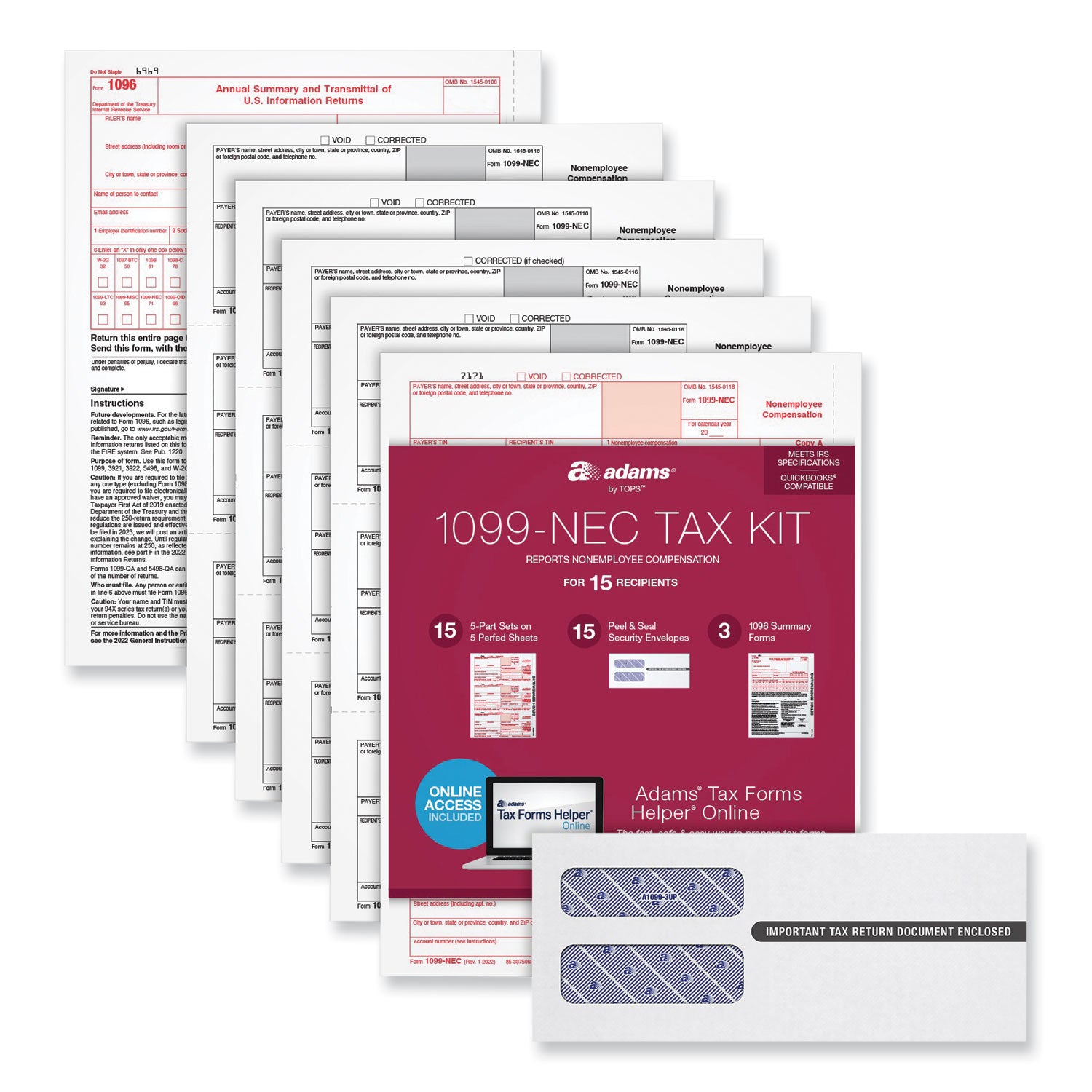 Adams Business Forms 22906KIT Five-Part 1099-NEC Online Tax Kit, Five-Part Carbonless, 3.66 x 8.5, 15/Pack - Pack of 20 TOP22906KIT