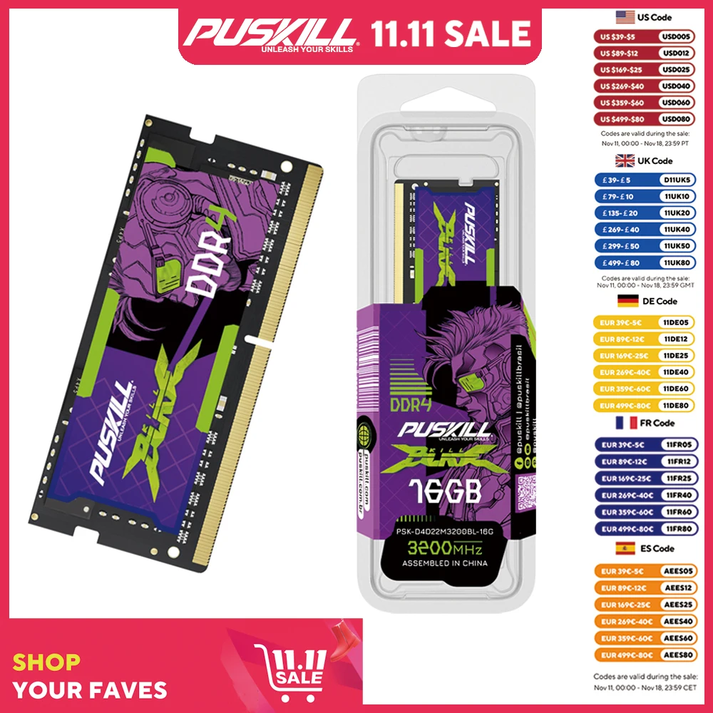 PUSKILL Killblade Memoria DDR4 Notebook 32gb 16gb 8gb 1.2V 3200MHz 2666MHz 2400MHz 260-PIN SODIMM RAM Laptop Memory  Read more