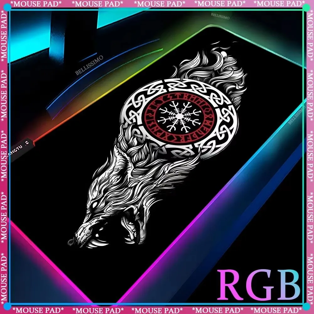 RGB Viking-Vegvisir Amulet Large MousePad LED Gaming Accessories Keyboard Pad XXL Desk mat Luminous Rubber Non-slip Mouse Pad  Read more
