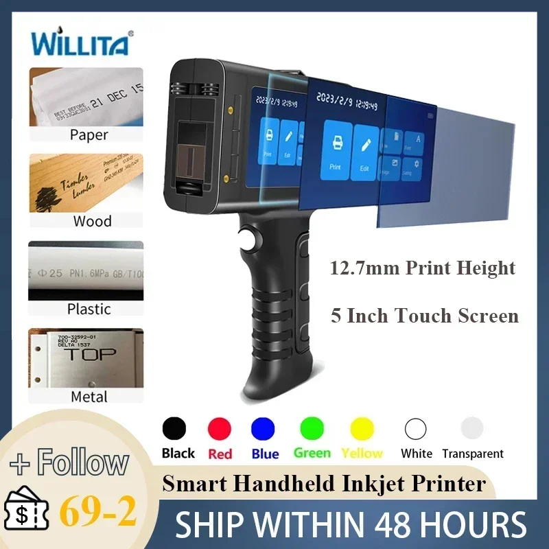 Willita 12.7mm Portable Handheld Inkjet Printer for Batch Number Barcode QR Code Logo Textile Hand Printer Label Coding Machine  Read more
