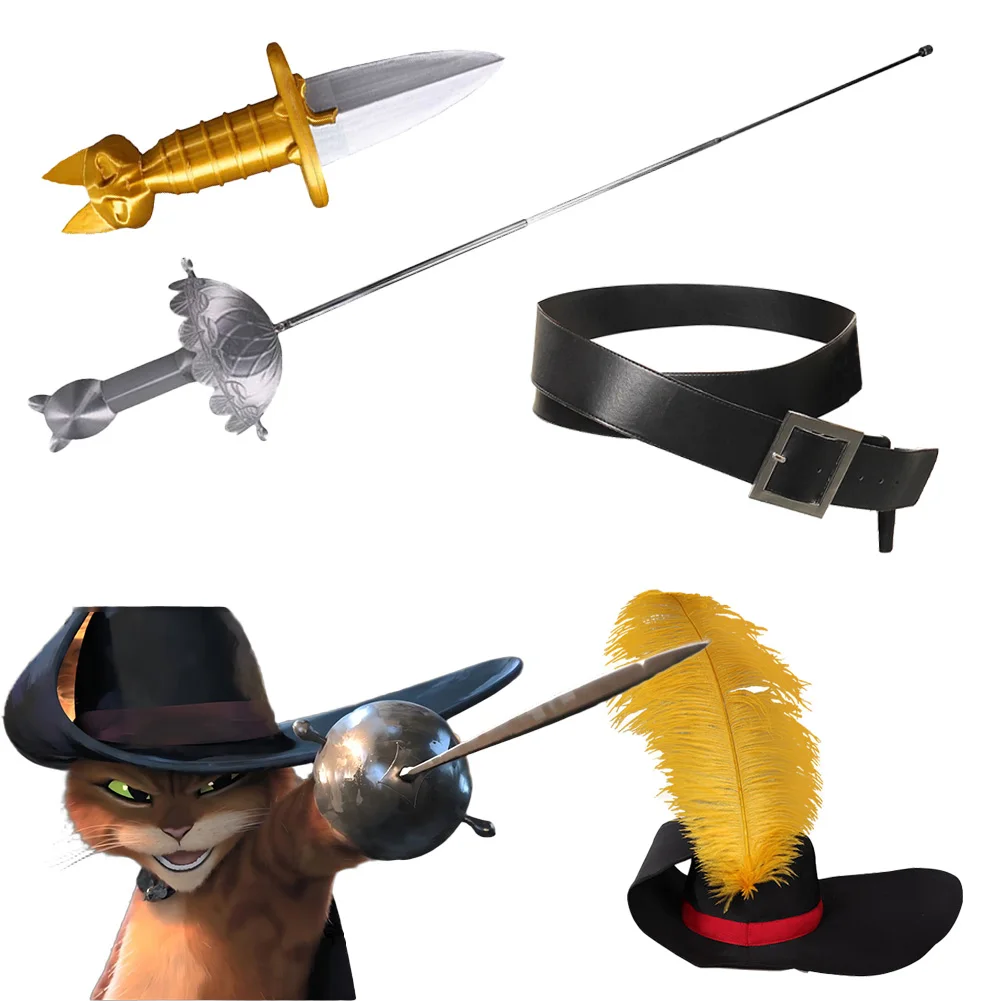 Fantasia Puss Into Boots Sword Cartoon Cat Swordsman Disfraz Costume Accessories 8 to 12 Years Boy Halloween Carnival Party Prop  Read more