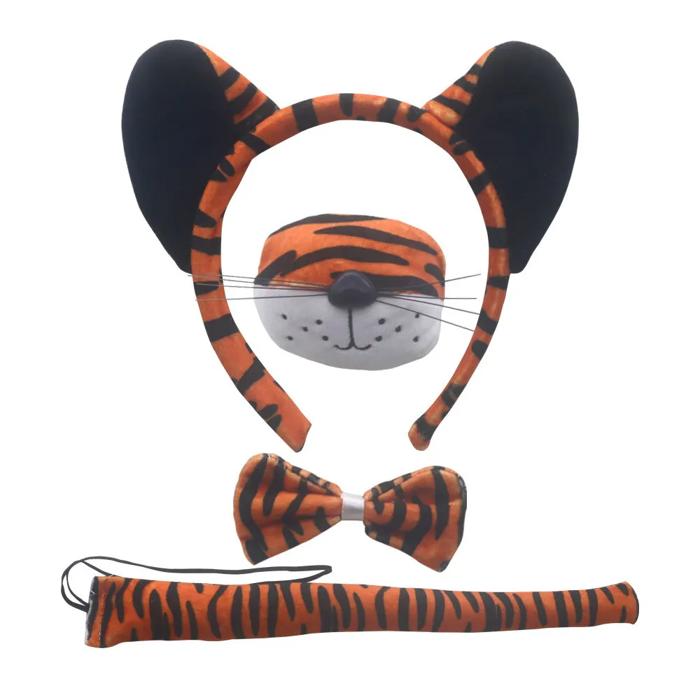 4 Pcs Tiger Costume For Halloween Party Costumes Set Include Tiger Ear Headband Bow Tie Nose Tail For Cosplay Cute Birthday Gift