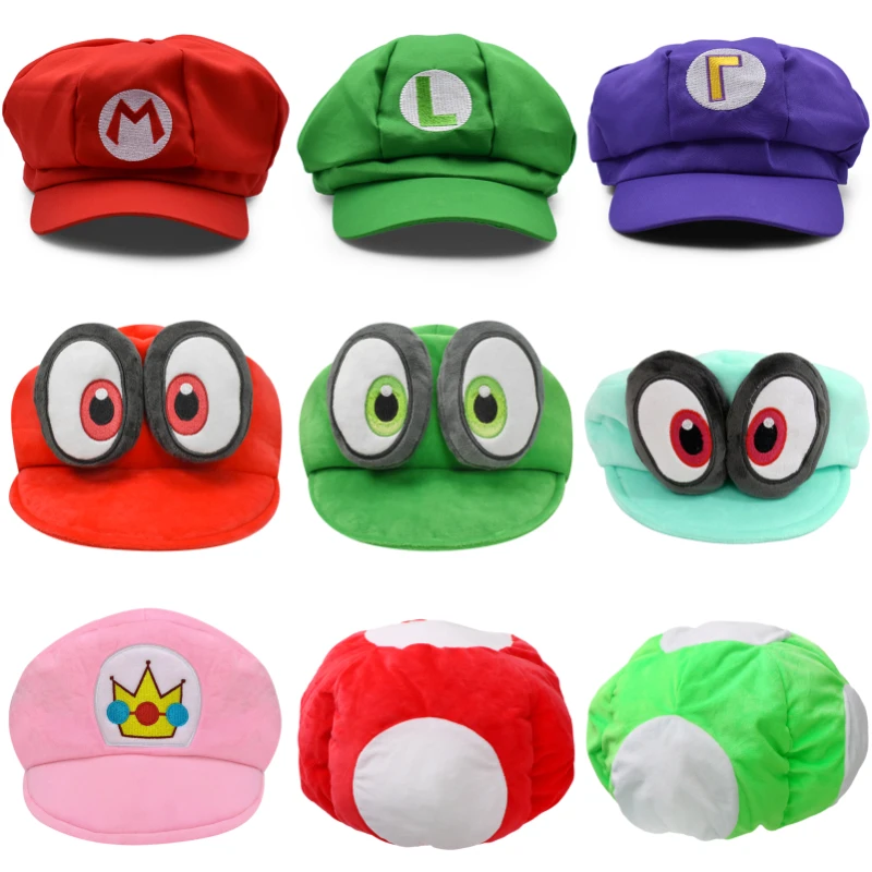 Kawaii Mario Luigi Bros Cappy Princess Peach Soft Plush Hats Waluigi Wario Mushroom Anime Peripherals Baseball Cap Kids Adults