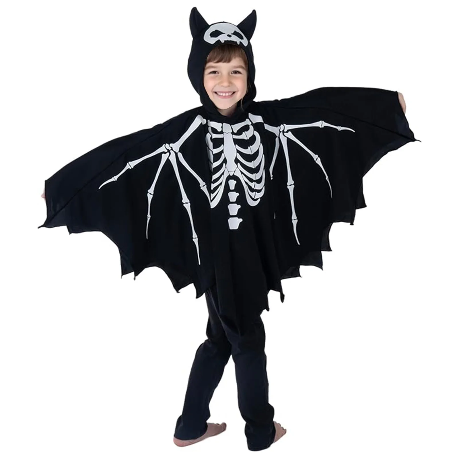 Halloween Costume for Boys Creative Skeleton/Bat Hooded Jumpsuit for Cosplay Party