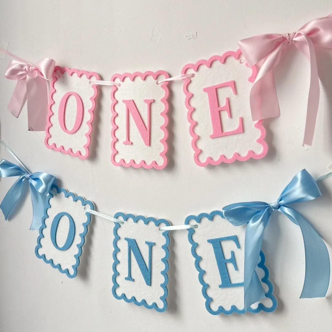 Sweet Bow ONE Non Woven Felt Banner Hat First Birthday Highchair Garland Photo Props for Kids Birthday Baby Shower Party Decor