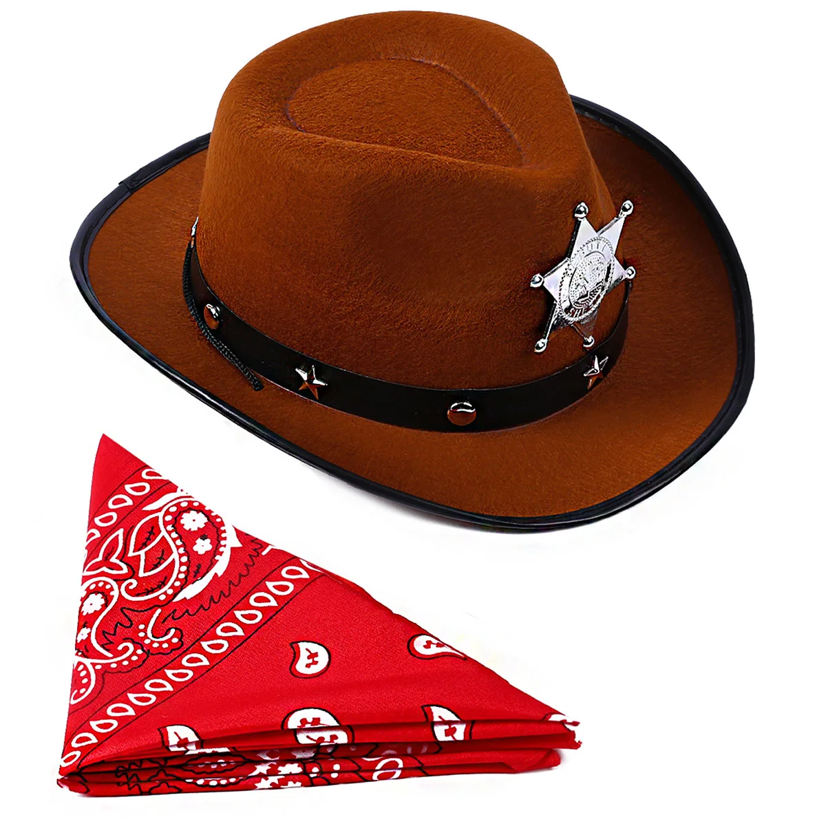 Toddler Boys Western Cowboy Brown Hat Cowgirl Costume Bandanna Felt Hat Halloween Wild West Cosplay Party Dress Up 1-3 T