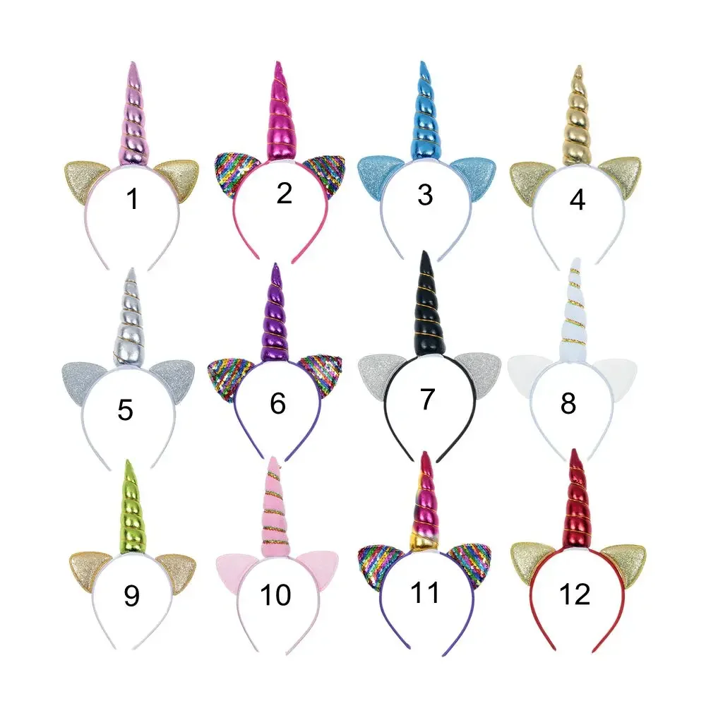 Yundfly Cute Baby Girls Glitter Unicorn Horn Hairband Kids Cat Ear Headwrap Hair Band Unicorn Party Hair Accessories