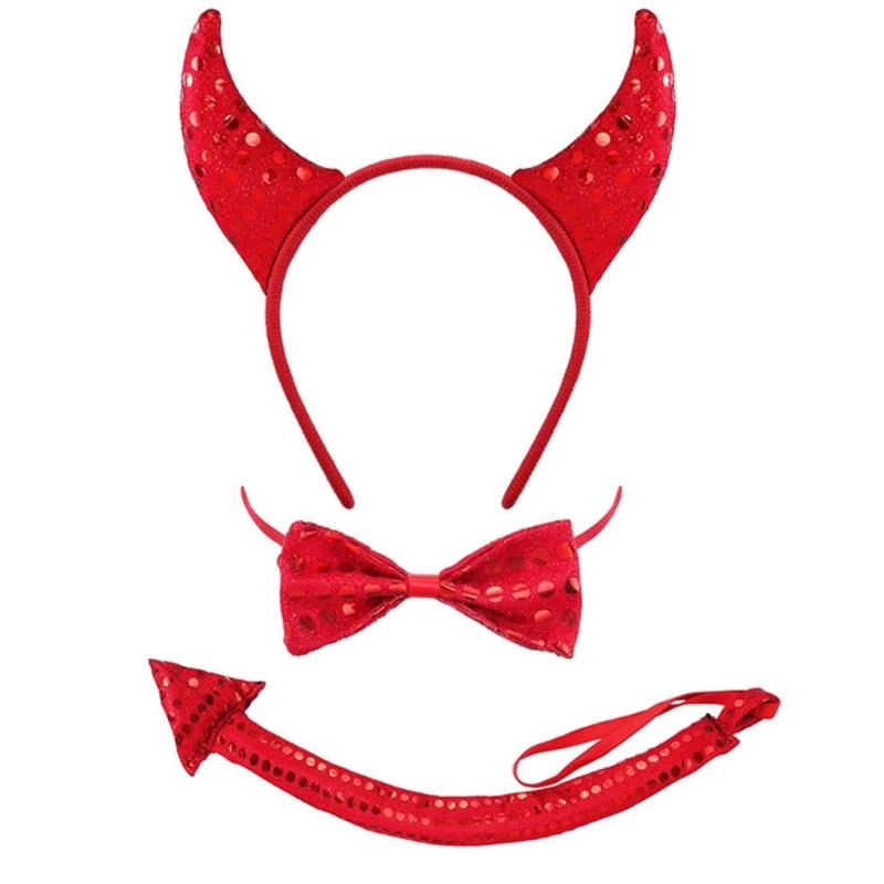 Red Horn Headband Collar Tail Animal Hair Hoop for Kids Halloween Shows Devil Animal Hairbands Red Sequins Costume