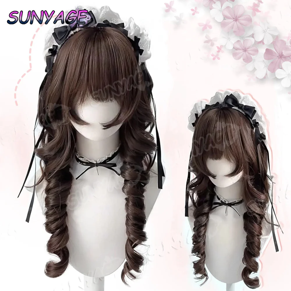 SUNYAGE Jellyfish Roll Princess Head Short Horns Sweet Cute Lolita Wig Sideburns Double Ponytail Party Halloween Synthesis Wig
