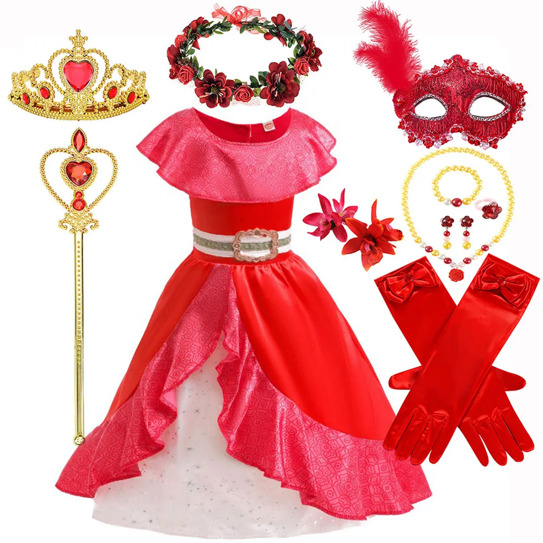 Disney Halloween Costume for Girls Baby Princess Dress Classic Elena of Avalor Red Ruffle Skirt Belt Dress Cosplay Party Gift