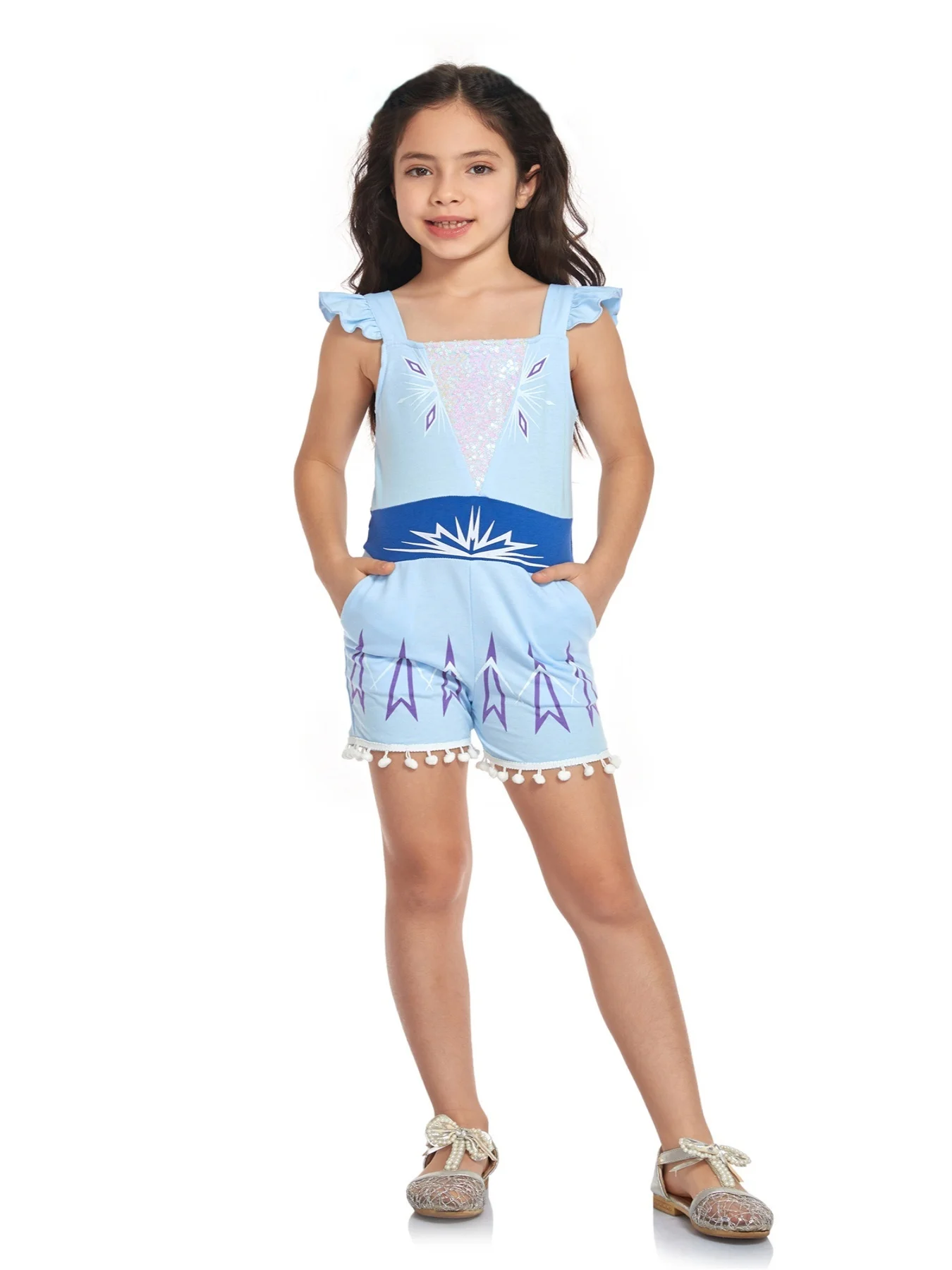 2-14Y Softest Girl Princess Romper With Pockets Holiday Trip and Everyday Wear Kid Cute Jumpsuit Dress Up Costume Jumpsuits