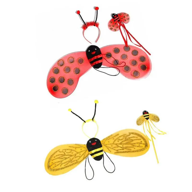 Children Girl Princess Bee Ladybug Wings Headband Magic Fairy Wand Prop Birthday Party Gift Christmas Halloween Costume Cosplay