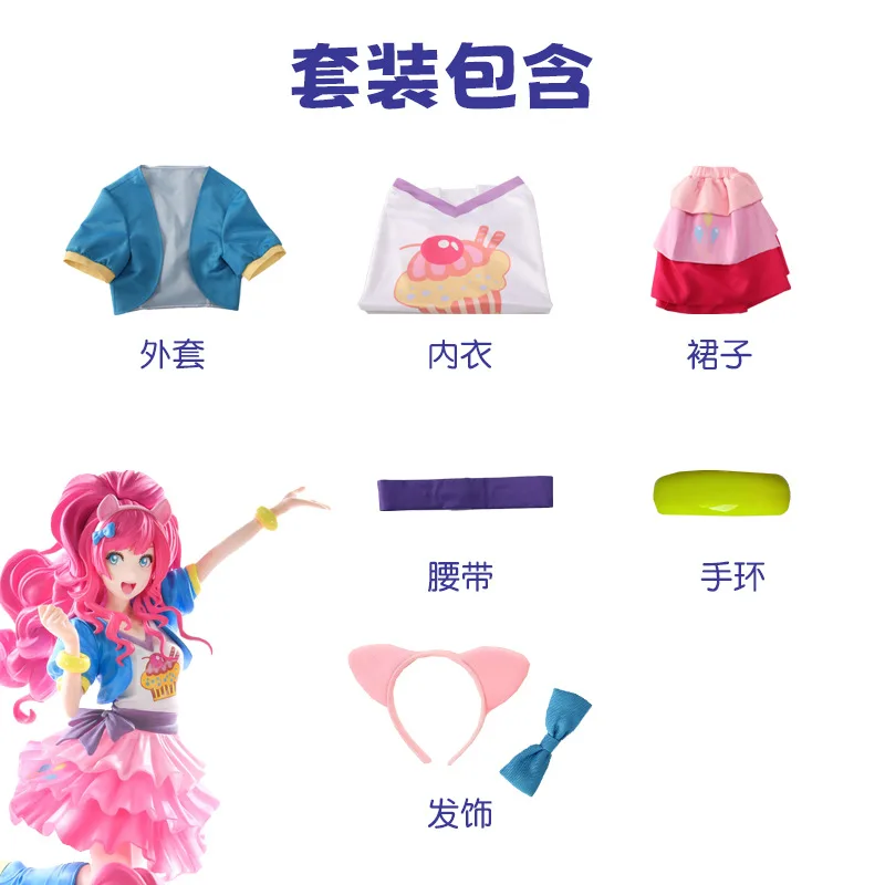 Anime Little Pony Pinkie Pie Cosplay Costume Fashion Uniform Suit Outfit Halloween Christmas Party Lovely Princess Skirt