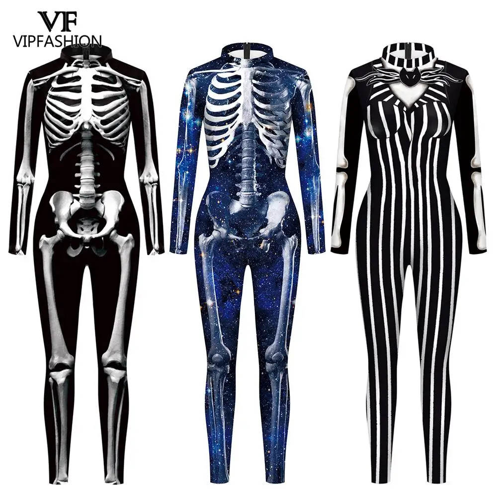VIP FASHION Adult Skeleton Cospaly Costume Unisex Halloween Ghost Jumpsuit Carnival Party Zentai Bodysuit Scary Show Outfit Suit
