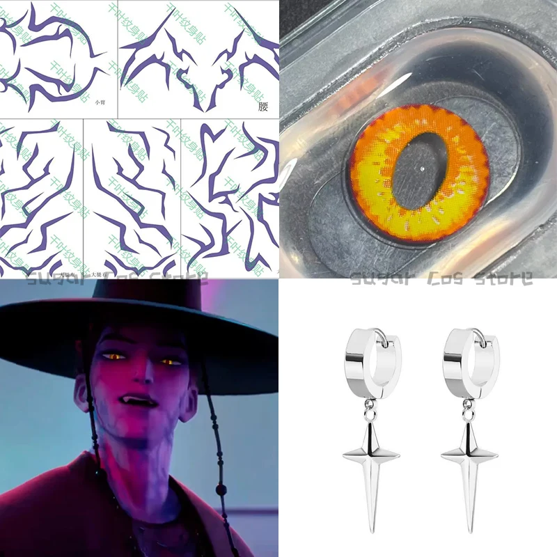K-Pop Demon Hunters Jinu Saja Boys Cosplay Props Tattoo Sticker Earring Villains Stage Roleplay Suit Halloween Mens Accessories  Read more