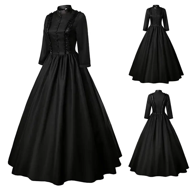 Medieval Victorian Retro Princess Cosplay Costume For Women Halloween Court Royal Gothic Elegant Vampire Bride Swing Dress