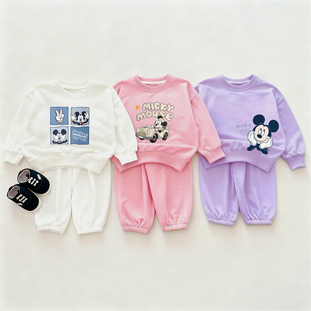 New Mickey Mouse Outfits Toddler Costume Cartoon Hoodie Solid Color Sweatpants Two Piece Long Sleeve Sets For 2 3 4 5 6Years