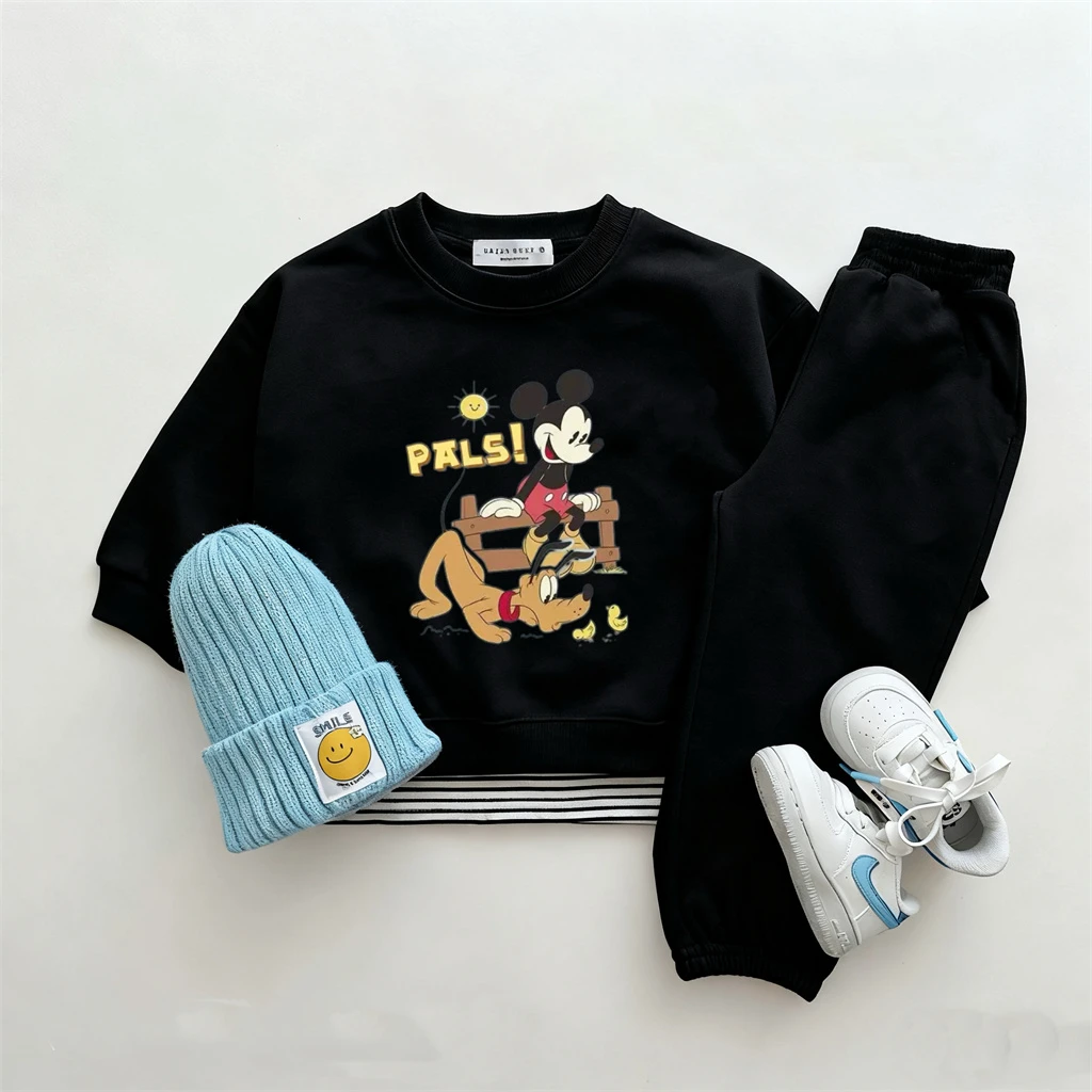 Full Printed Disney Cartoon Girl Boy Tracksuits Autumn Clothing Loose Fashion Kids Sweatshirt Set Toddler Costume Hoodie + Pants