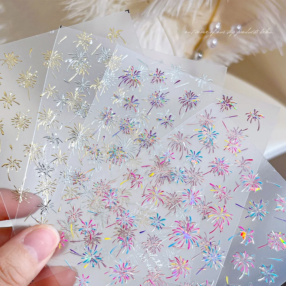 New Year Colorful Fireworks Nail Art Stickers Romantic Starry Sky Bright Fireworks Adhesive Nail Slider Jewelry Nail Art Sticker