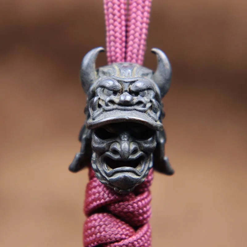 Black Japanese Eagle Nose Samurai Helmet Knife Bead Brass Woven Paracord Lanyard Pendant Outdoor EDC Umbrella Rope DIY Accessory