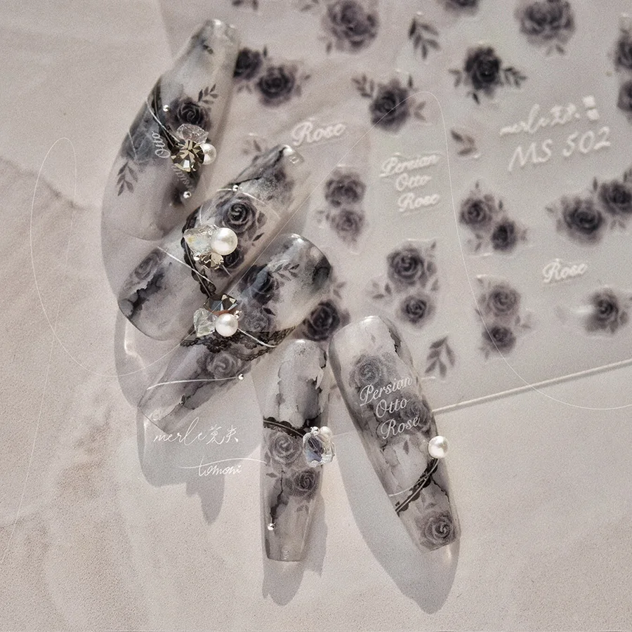 Black And White Rose Flower High Quality Adhesive Nail Art Stickers DIY Manicure Decal Decoration MS-502