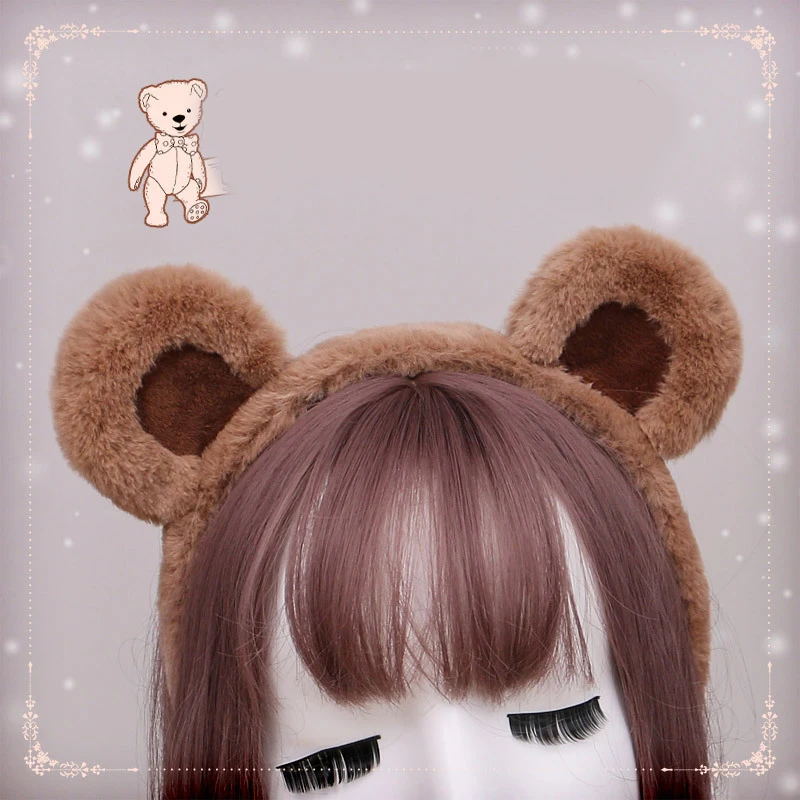 Lolita Plush Hair Hoop Animal Bear Ears Headwear Furry Headband Cute Headpiece Anime Fancy Dress Kawaii Cosplay Accessories