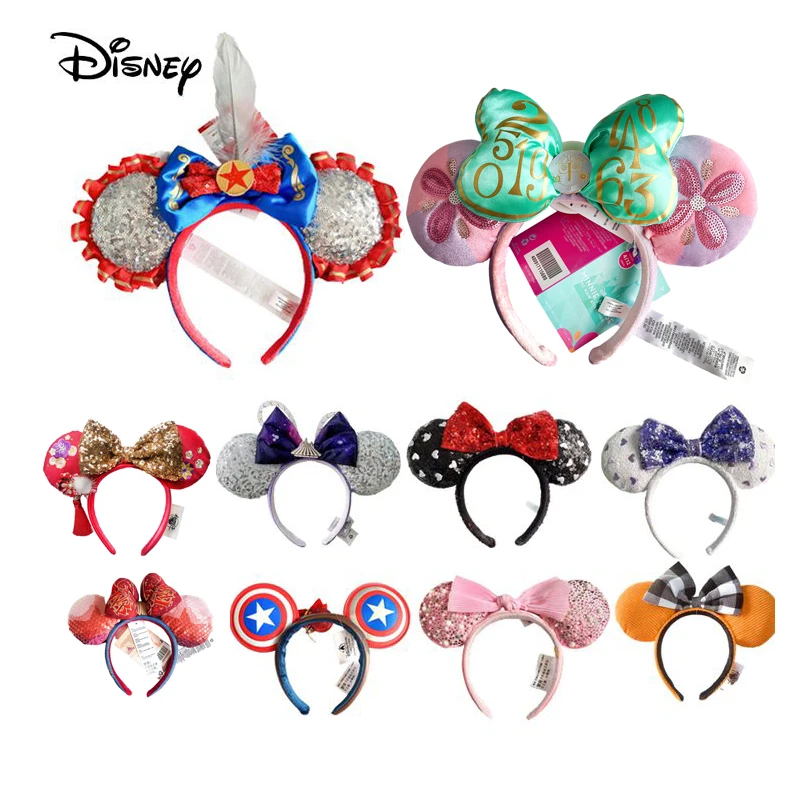 Disney Mickey Minnie Mouse Ears Headband Space mountain Lunar 2025 Minnie Bow Pink Sequins Cartoon Anime Headdress Headband Gif  Read more