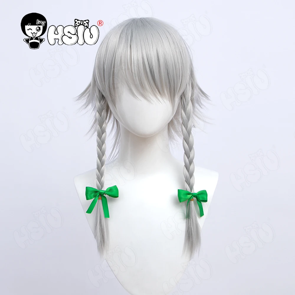 Izayoi Sakuya Cosplay Wig Anime TouHou Project Cosplay HSIU Silver and white double braided short hair Free Wig Cap