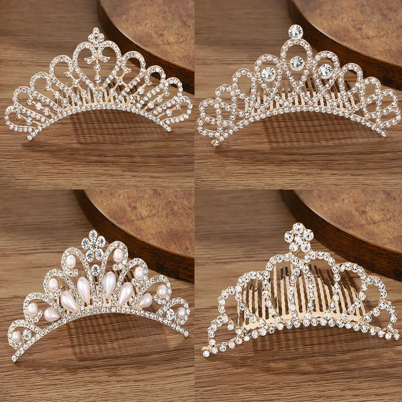 Children Mini Crowns Hair Comb Crystal Princess Crown Bridal Tiaras For Women Girls Rhinestone Pearl Wedding Bridal Tiara Gift  Read more