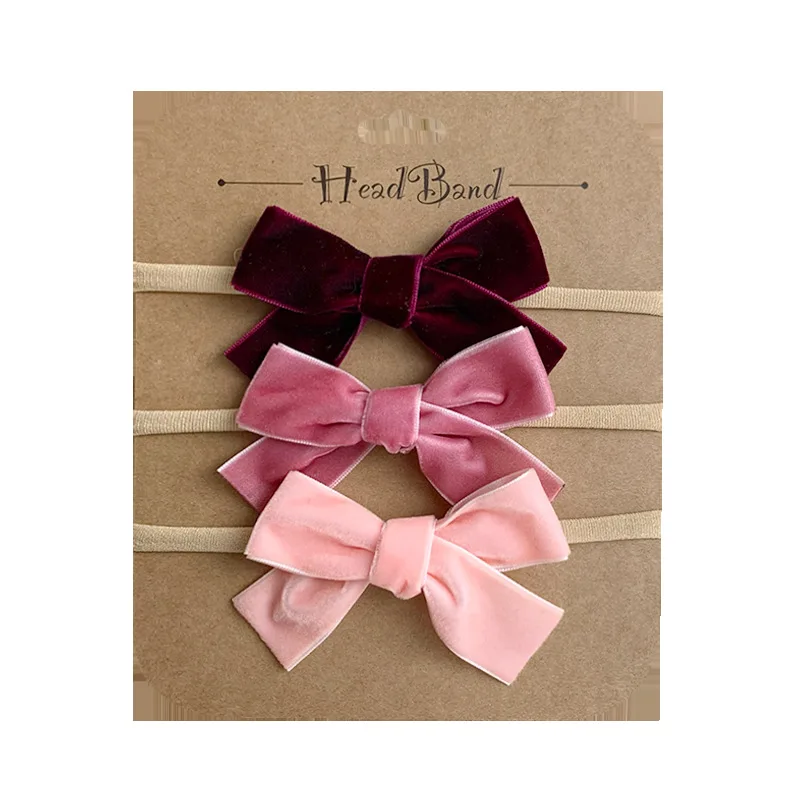 3pcs/Set Velvet Baby Bows Headbands Girls Hair Accessories Newborn Photograph Children Lovely Hairband Elastic Nylon Bands