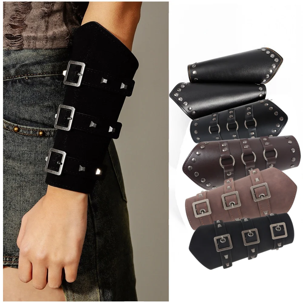Men Medieval Cosplay PU Leather Armor Arm Warmers Lace-Up Viking Pirate Knight Gauntlet Wristband Bracer Steam Punk Accessories