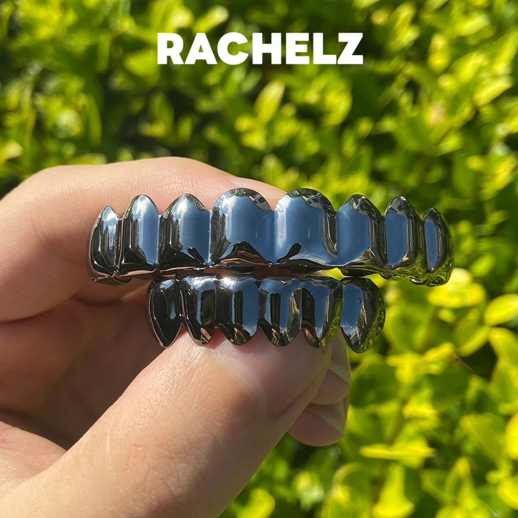 RACHELZ Hip Hop 8/6 Black Color Teeth Grillz Punk Top Bottom Glossy Tooth Caps Decor For Women Men Jewelry Halloween Cosplay