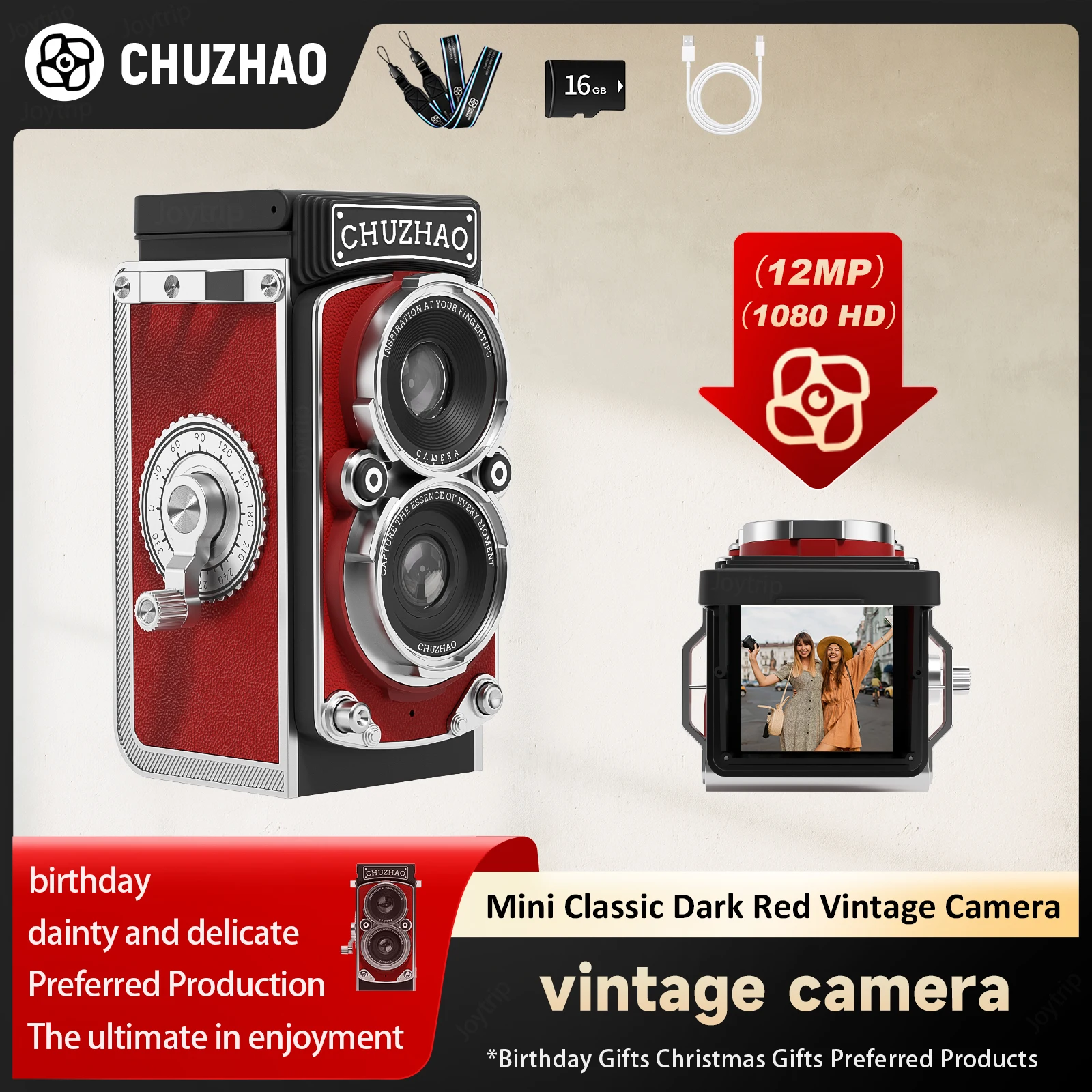CHUZHAO Retro Mini Digital Camera Autofocus 12MP, Portable Vlogging Camera with 1080P FHD Video, Perfect Ideal Gift