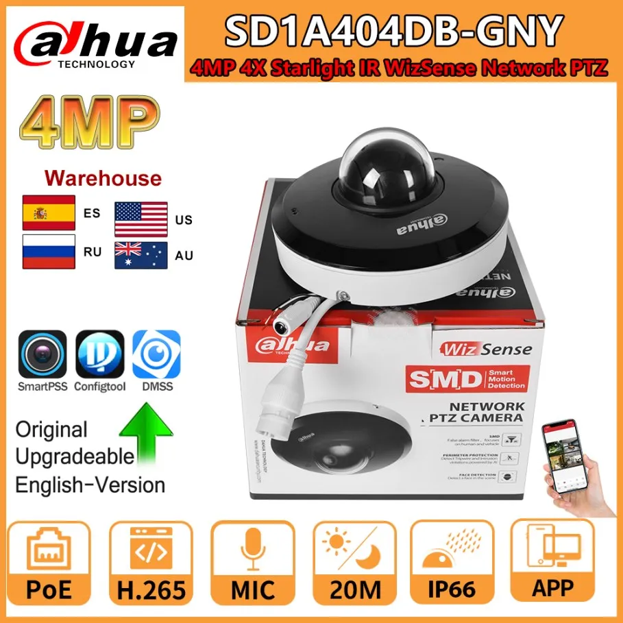 Dahua 4MP Camera SD1A404DB-GNY 4X Starlight IR WizSense PTZ PoE Built-in MIC SD Card Slot People Counting Face Detection SMD 30