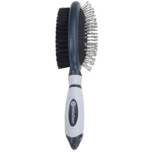 Evolution Pin and Bristle Combo Dog Brush - This 2 for 1 tool has a pin side to remove mats and tangles. The bristle side brings the natural oils of your dog to the surface to promote a healthy and shiny coat. Ergonomic Handle Non-Slip  Read more