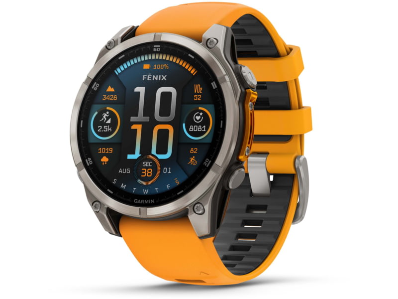 Garmin fenix 8 AMOLED 51mm GPS Watch Sapphire Titanium with Spark Orange/Graphite Silicone Band 010-02905-10