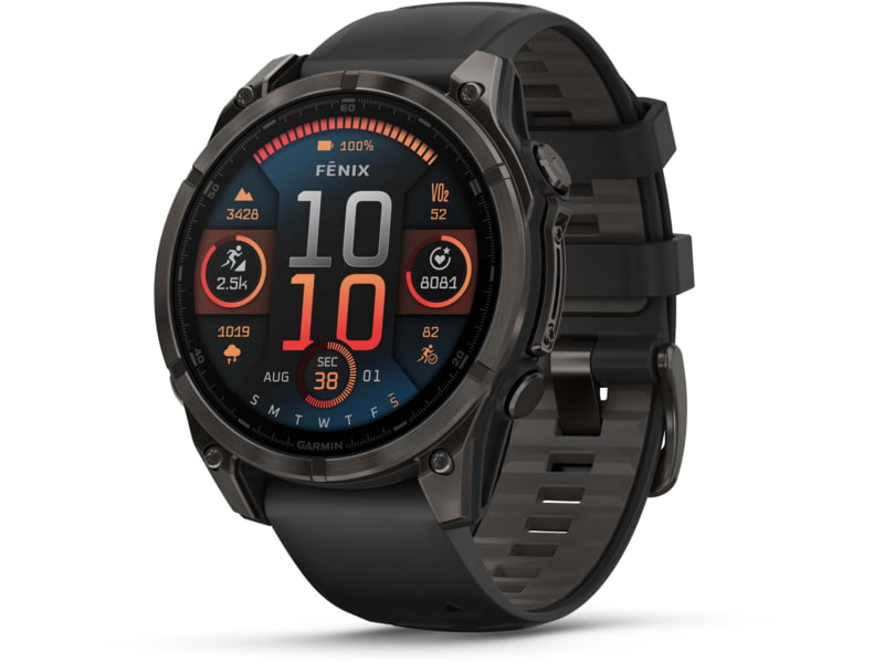 Garmin fenix 8 AMOLED 47mm GPS Watch Sapphire Carbon Gray DLC Titanium with Black/Pebble Gray Silicone 010-02904-20