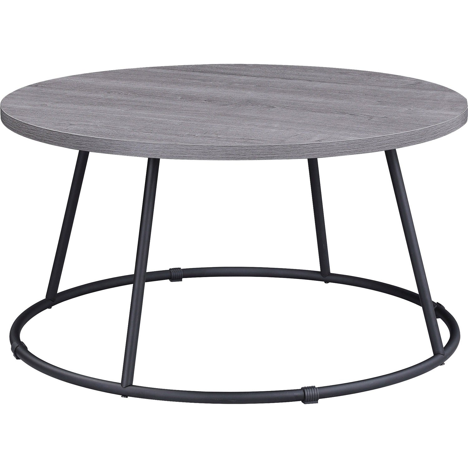 Round coffee table departs from the traditional with an industrial style. Durable laminate, 1" thick top with PVC edge is supported by four metal legs and a circular base. Base and legs are made of powder-coated steel so you can count on sturdy...